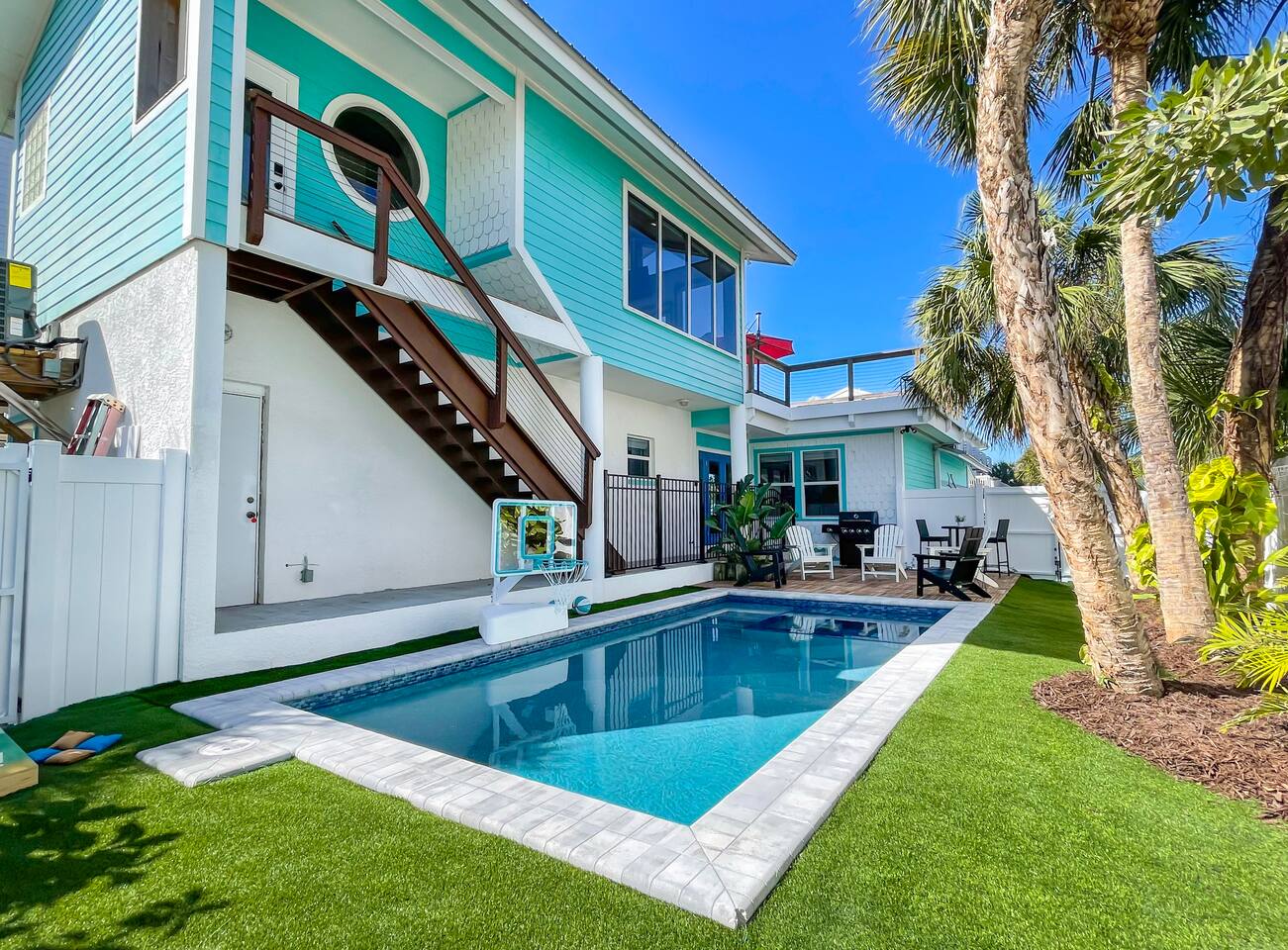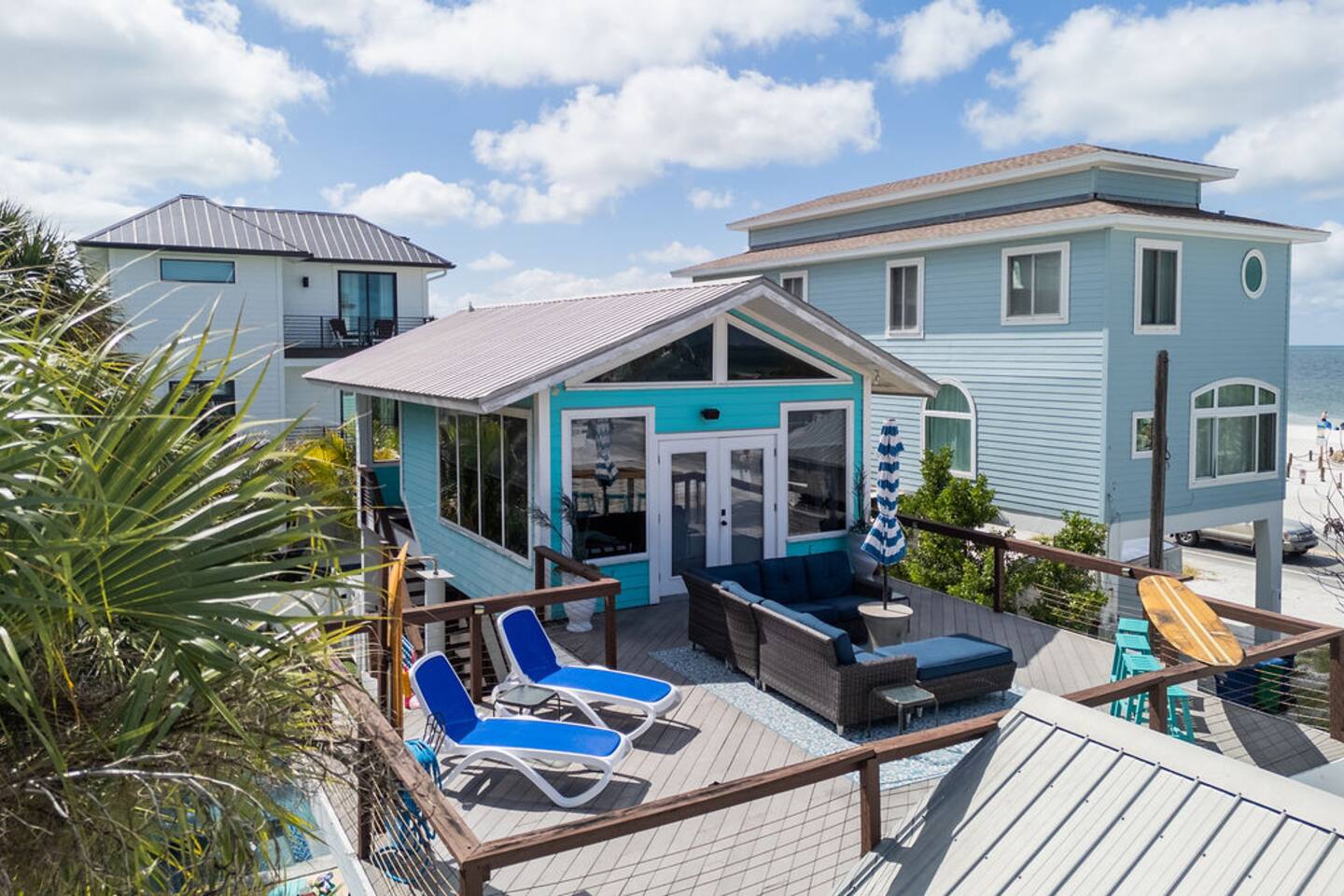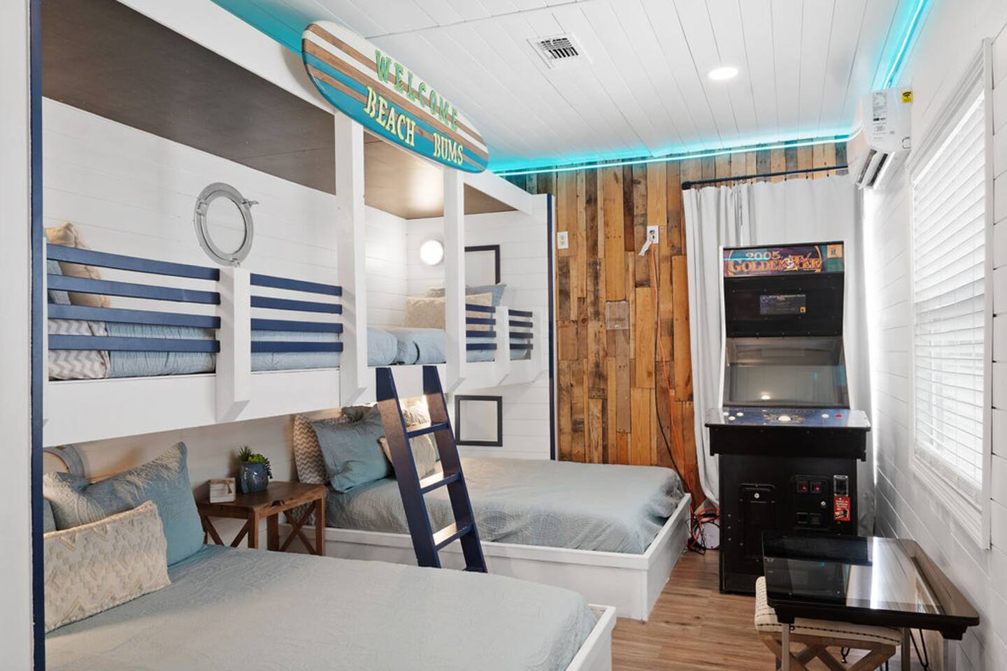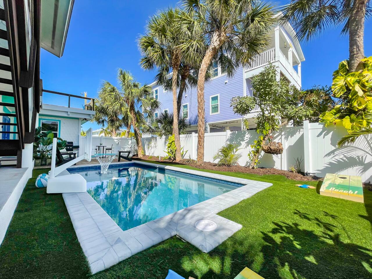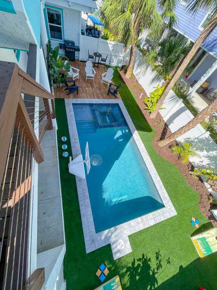 โ๏ธ3 bedrooms ๐ and 3 full bathrooms (bath ๐ for kiddos!) ๐ Perfect destination for GIRLS TRIP, Bachelorette party, family reunion, MILESTONE birthday trip ๐ ๐๐พ ๐ ๐ผ ๐ โ๏ธ1st floor KING master coastal luxury: kitchenette and bar, on-suite bathroom, desk with printer and additional trundle (twin-twin) ๐ ๐BUNK/GAME room with NEW, CUSTOM beds (2 queen & 2 twin) - 11/2023 ๐ "Welcome Beach Bums!" โ๏ธGolden tee arcade game ๐น๏ธ, digital game table (Infinity table) ๐Heated POOL / SPA, games, ๐grill, outdoor TV ๐บ, lounge chairs ๐ ๐โโ๏ธ ๐ฉฑ โ๏ธ2nd floor KING master has its own private entrance, full bath, coffee & mini fridge; private and QUIET ๐ง๐ฝโโ๏ธ โ๏ธ ๐ GULF views ๐ rooftop DECK, surfboard BAR๐น & shower, sectional seating with umbrella โ๏ธ โ๏ธ6 seat golf cart๐ฆ available for rent, street legal, no car needed ๐๏ธ they come to you! โ๏ธ 3 major airports: SRQ (14 miles), PIE (46 miles), TPA (55 miles)