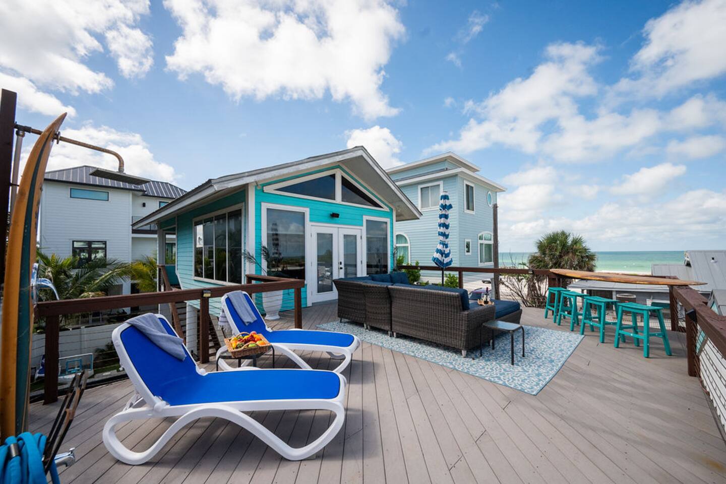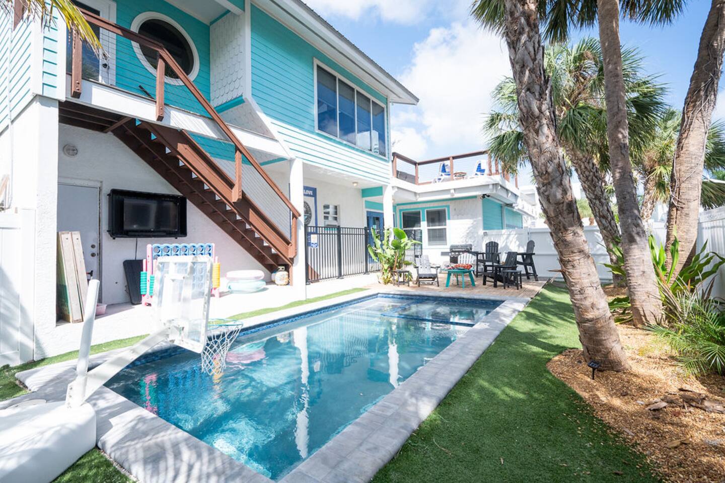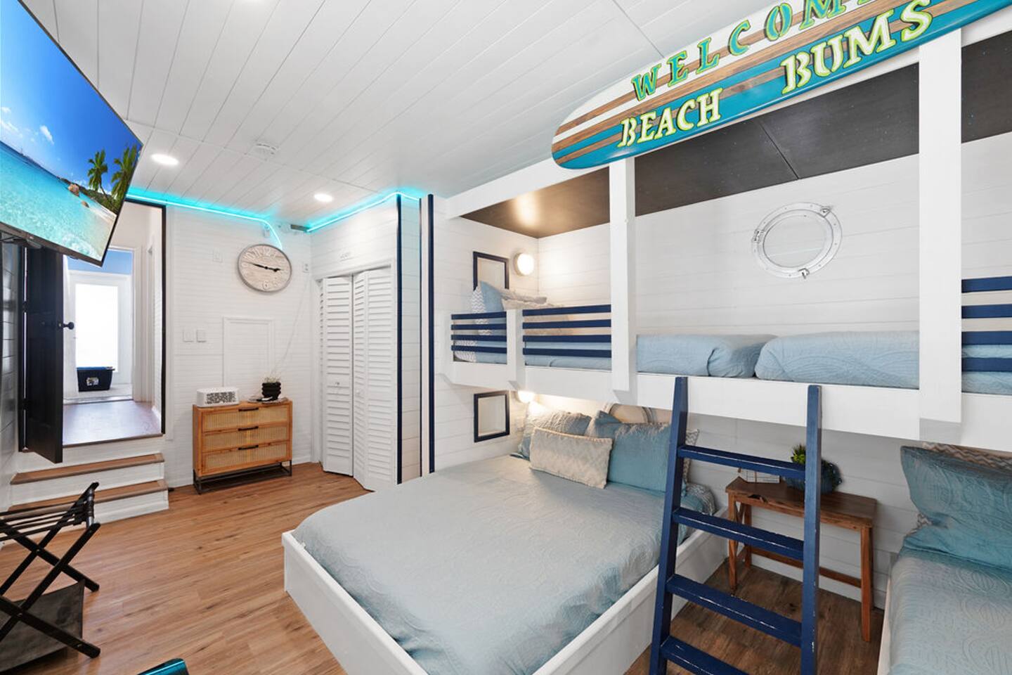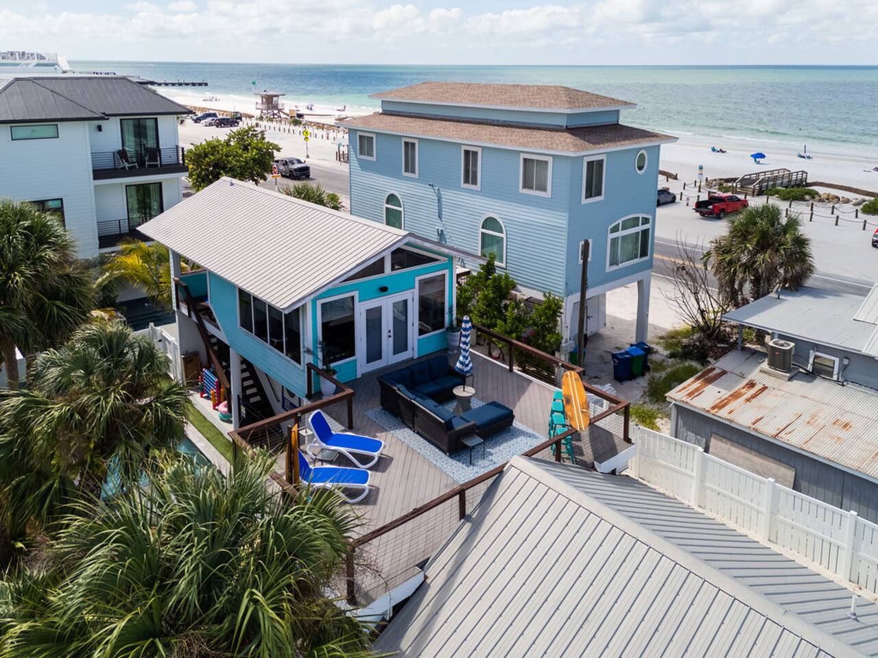 โ๏ธ3 bedrooms ๐ and 3 full bathrooms (bath ๐ for kiddos!) ๐ Perfect destination for GIRLS TRIP, Bachelorette party, family reunion, MILESTONE birthday trip ๐ ๐๐พ ๐ ๐ผ ๐ โ๏ธ1st floor KING master coastal luxury: kitchenette and bar, on-suite bathroom, desk with printer and additional trundle (twin-twin) ๐ ๐BUNK/GAME room with NEW, CUSTOM beds (2 queen & 2 twin) - 11/2023 ๐ "Welcome Beach Bums!" โ๏ธGolden tee arcade game ๐น๏ธ, digital game table (Infinity table) ๐Heated POOL / SPA, games, ๐grill, outdoor TV ๐บ, lounge chairs ๐ ๐โโ๏ธ ๐ฉฑ โ๏ธ2nd floor KING master has its own private entrance, full bath, coffee & mini fridge; private and QUIET ๐ง๐ฝโโ๏ธ โ๏ธ ๐ GULF views ๐ rooftop DECK, surfboard BAR๐น & shower, sectional seating with umbrella โ๏ธ โ๏ธ6 seat golf cart๐ฆ available for rent, street legal, no car needed ๐๏ธ they come to you! โ๏ธ 3 major airports: SRQ (14 miles), PIE (46 miles), TPA (55 miles)